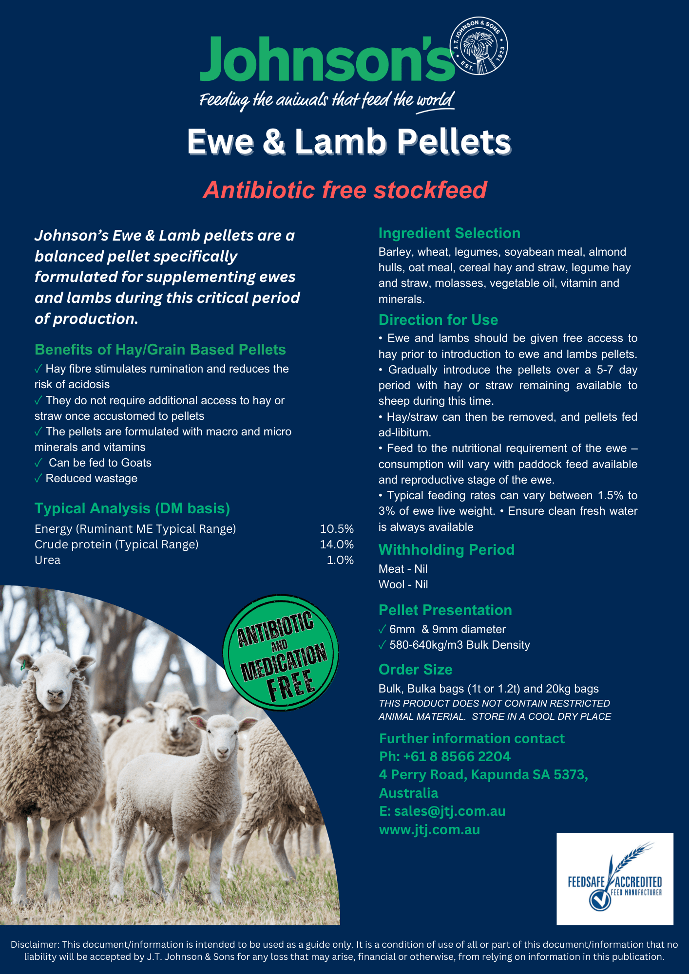 Johnson’s Ewe & Lamb pellets are a balanced pellet specifically formulated for supplementing ewes and lambs during this critical period of production