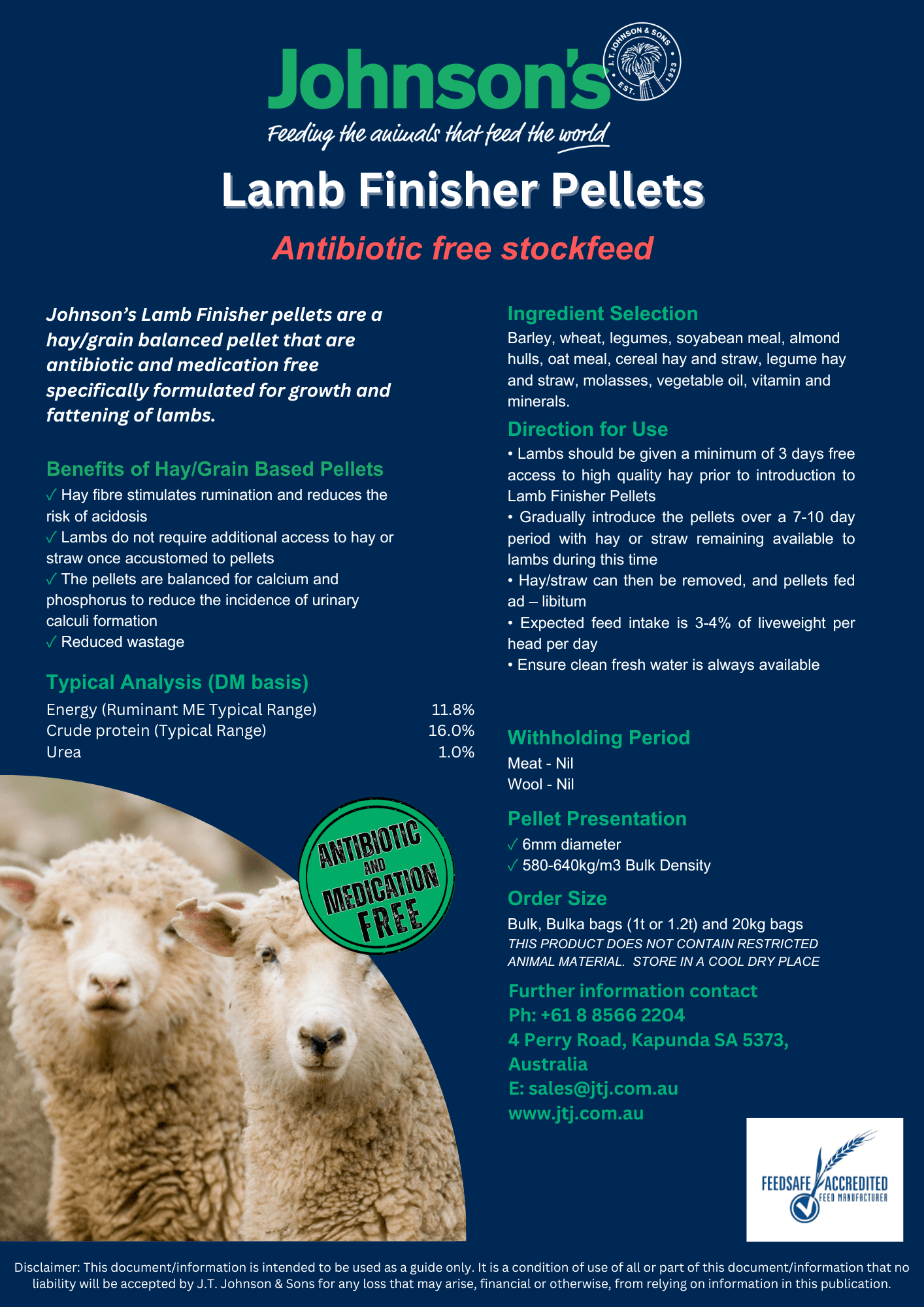 Johnson’s Lamb Finisher Pellets are a hay/grain balanced pellet that are antibiotic and medication free specifically formulated for growth and fattening of lambs.
